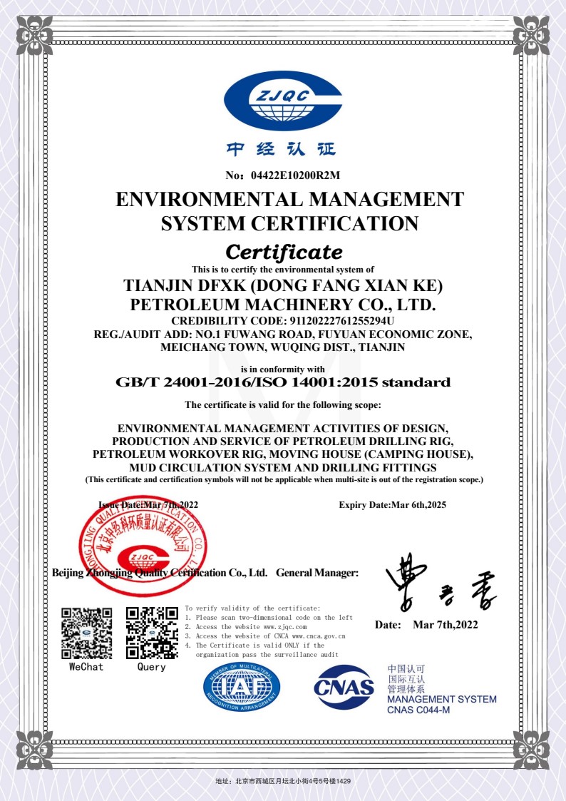 環(huán)境管理體系認(rèn)證證書英文