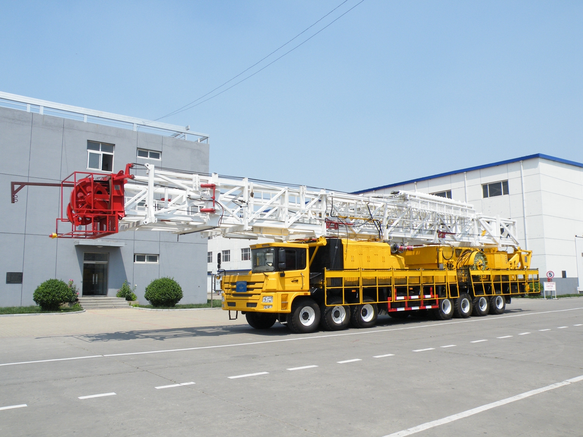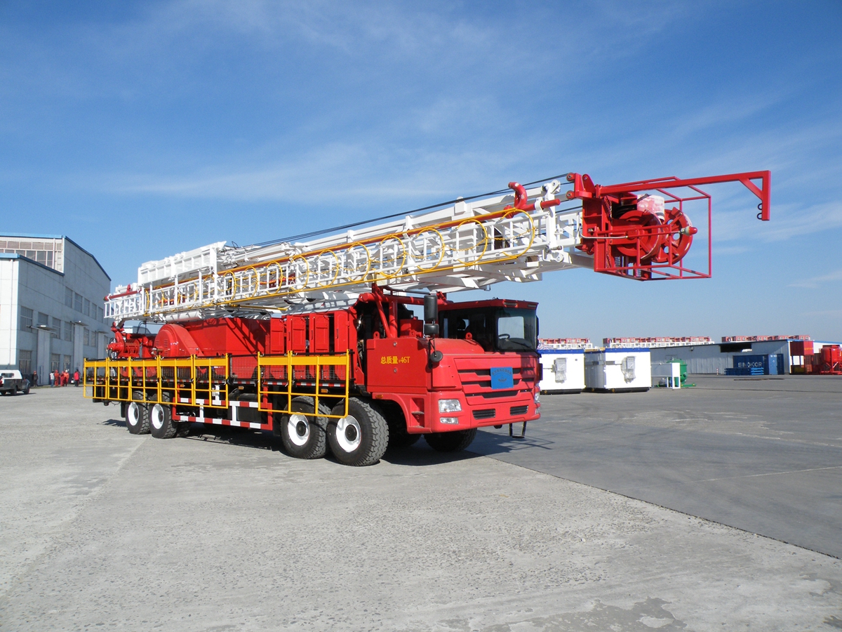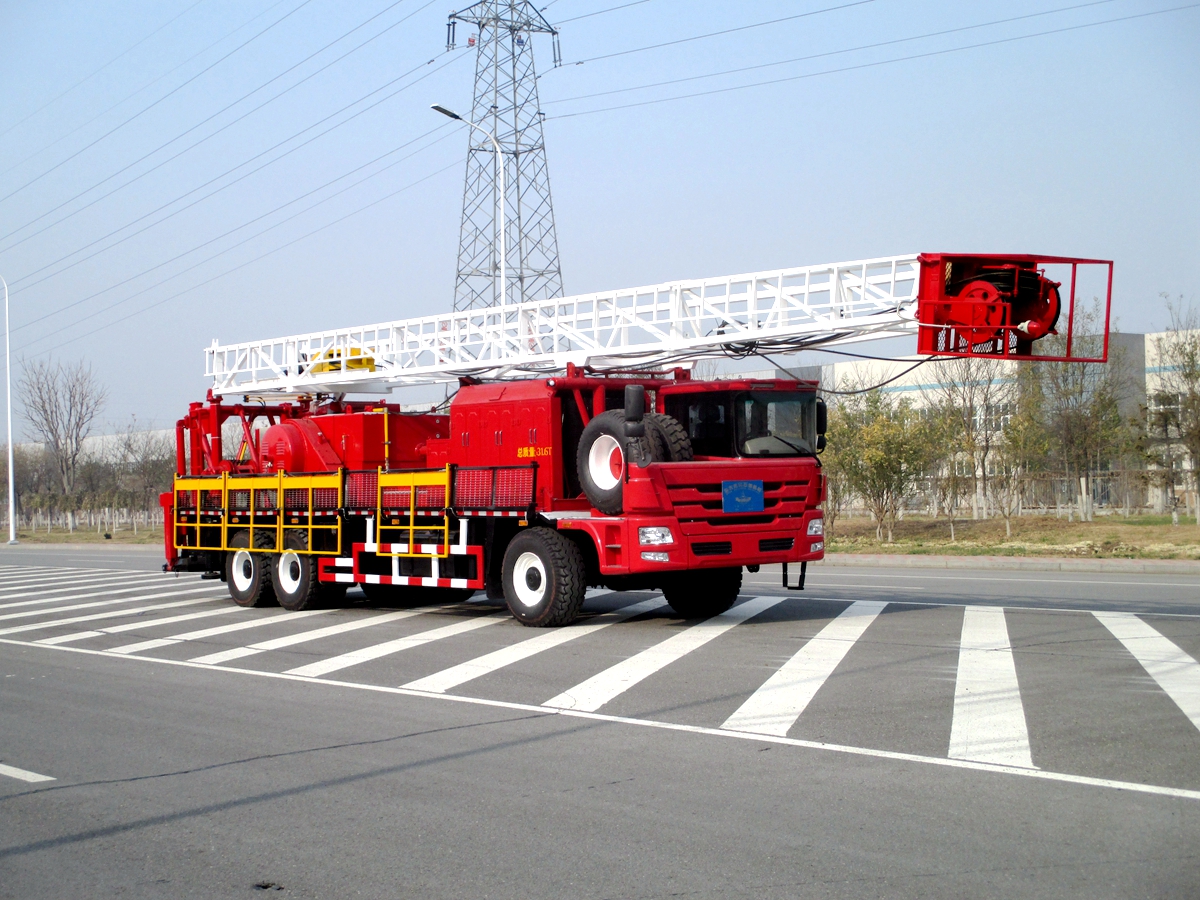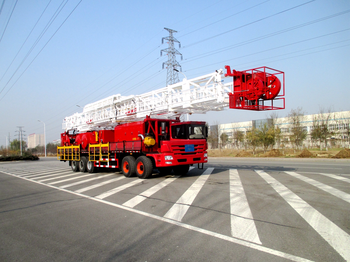 車裝修井機(jī)是將動力系統(tǒng)、絞車、井架、游車系統(tǒng)及傳動系統(tǒng)等部件安裝于自走式底盤上。整機(jī)具有結(jié)構(gòu)緊湊,集成度高,占地面積小,移運(yùn)快捷,搬遷效率高等特點(diǎn)。